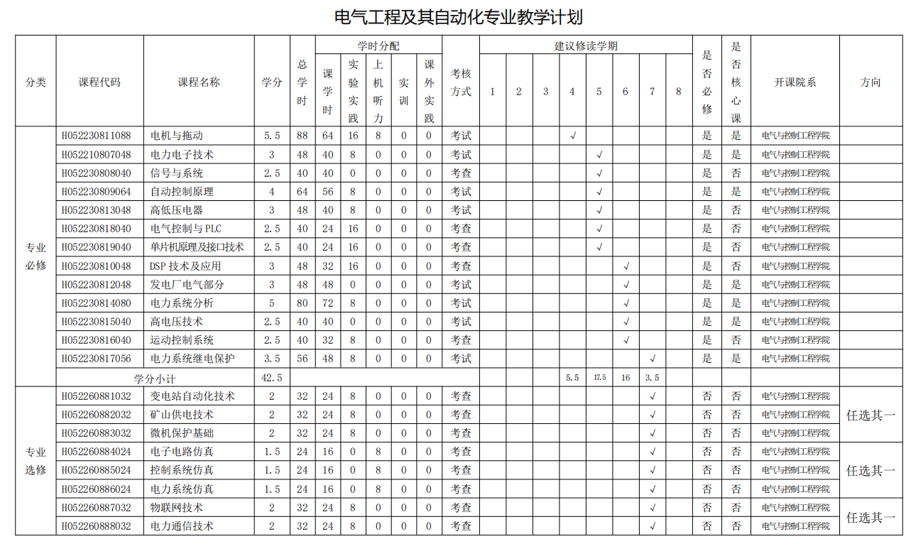 电路、模拟电子技术、数字电子技术、电机与拖动、自动控制原理、电力电子技术、电力系统分析、发电厂电气部分、高电压技术、电力系统继电保护。