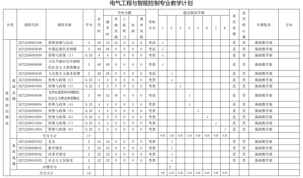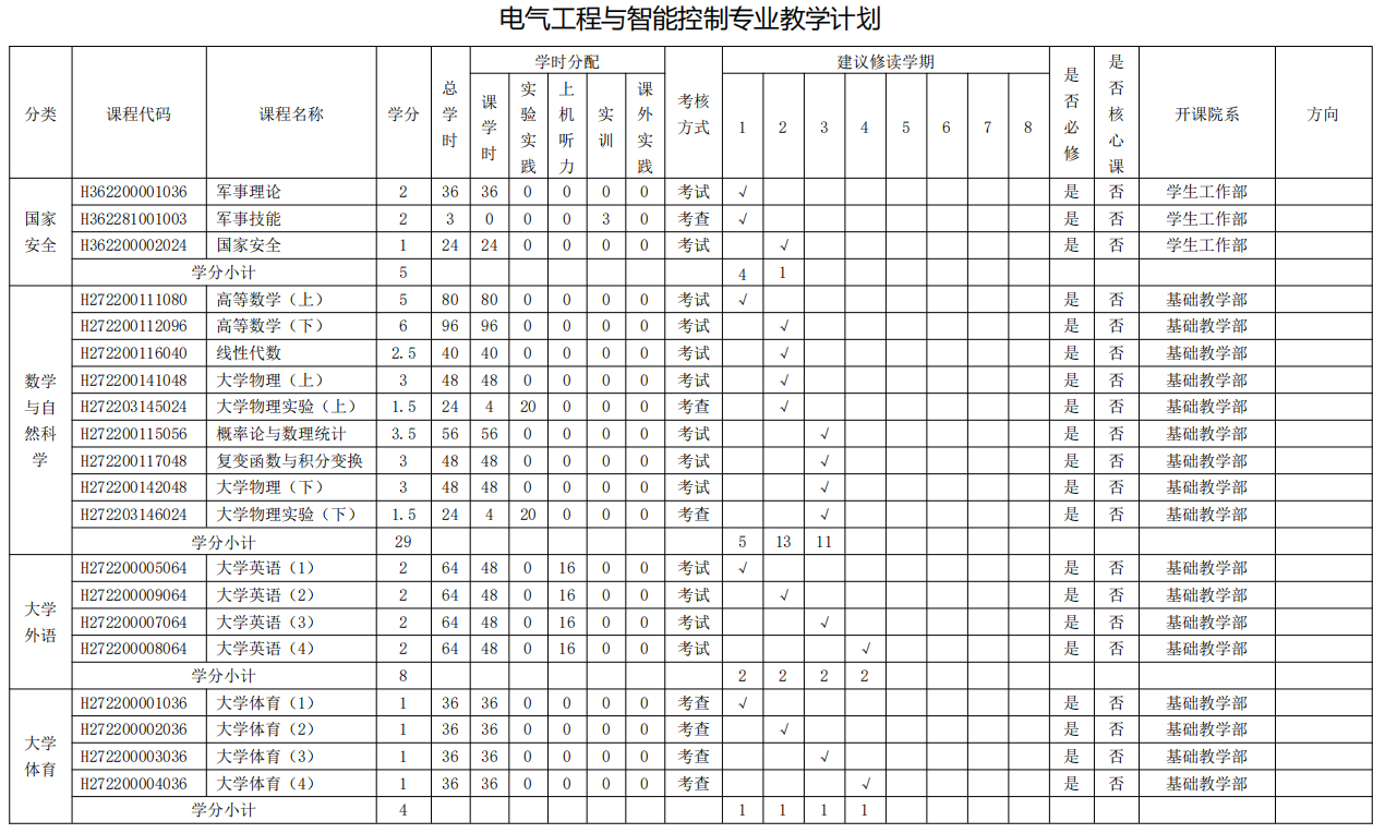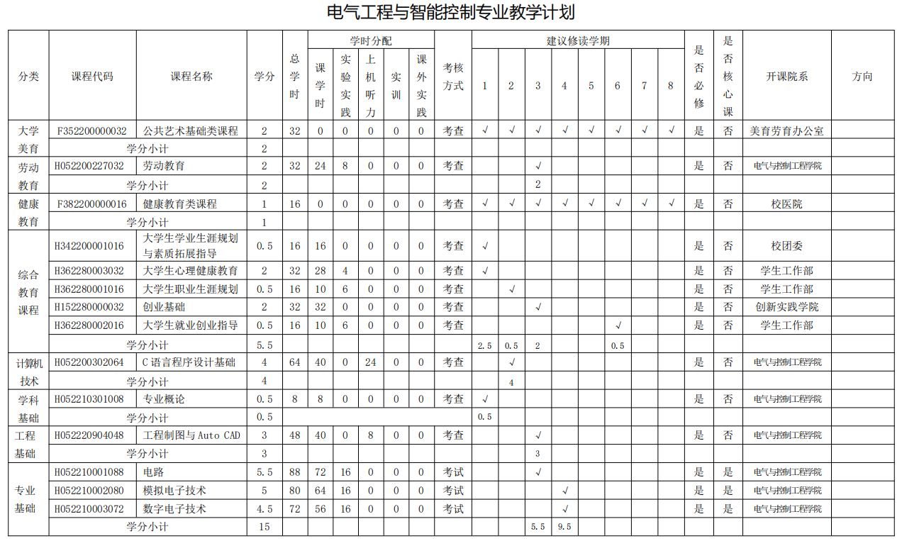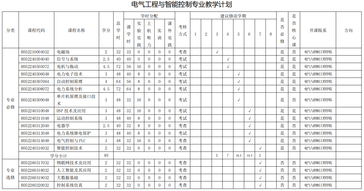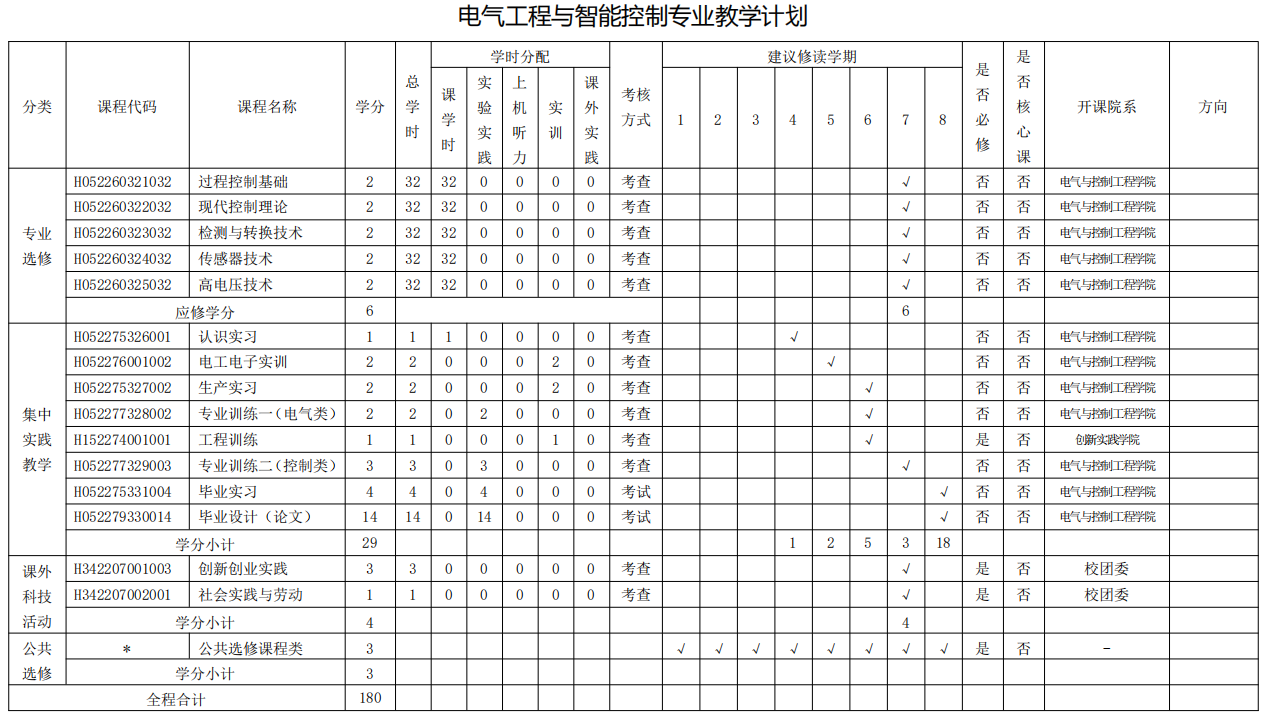 电气工程与智能控制专业人才培养方案