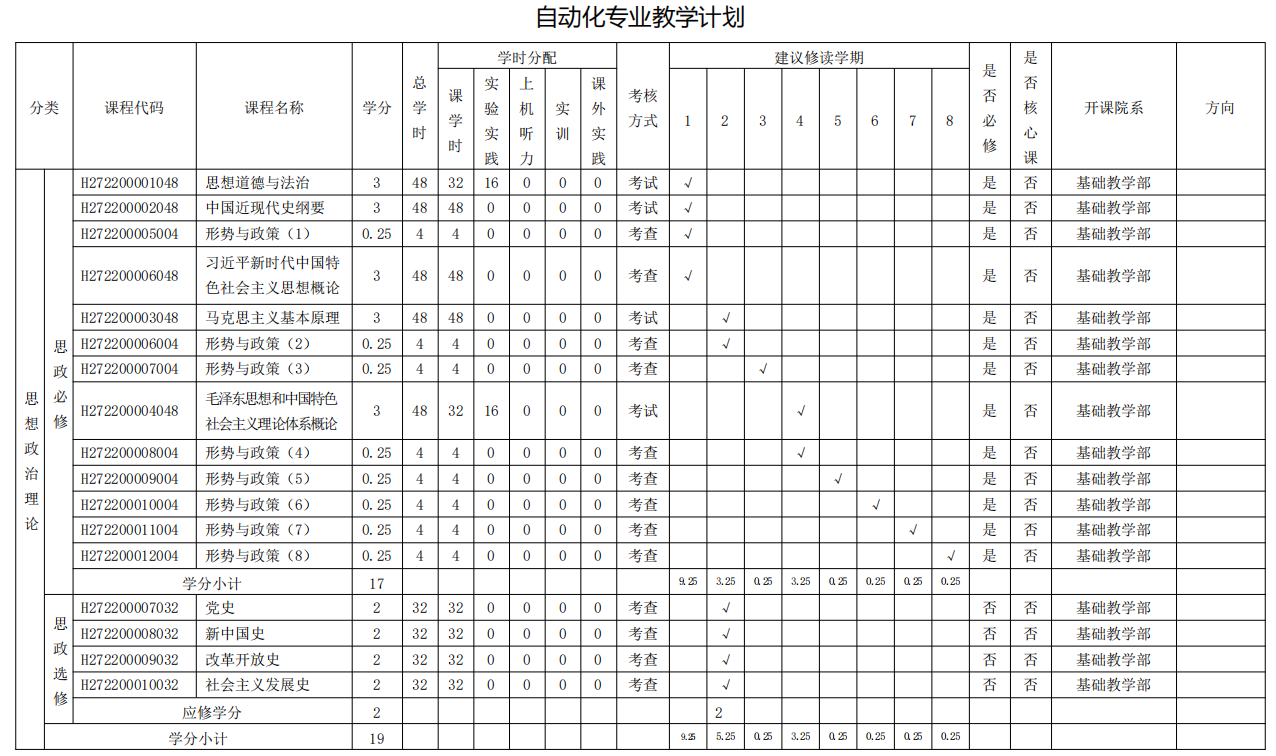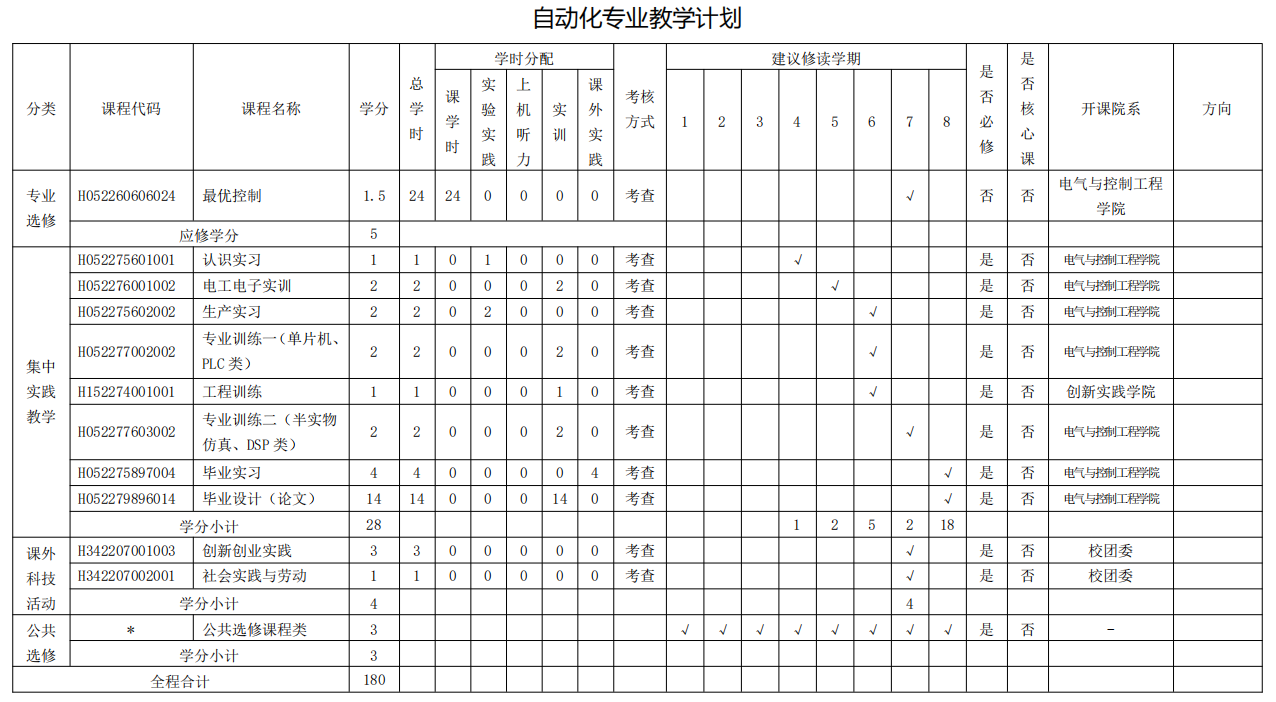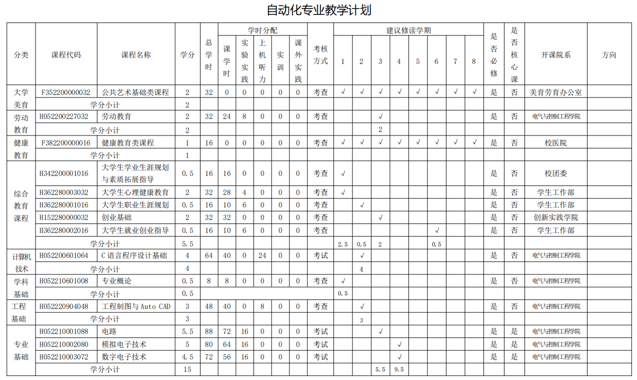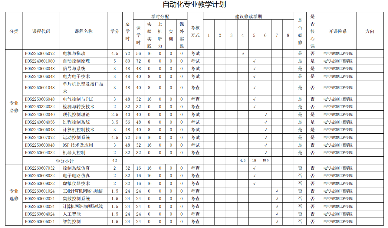 自动化专业人才培养方案