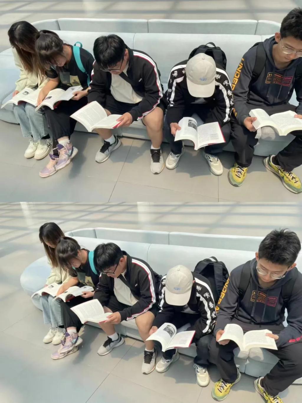 文学社电气22-6刘润泽、自动22-1秦小峰等同学正在图书馆读书。看着他们孜孜不倦的读书,不禁让我们想到周总理的名言:为中华崛起而读书!