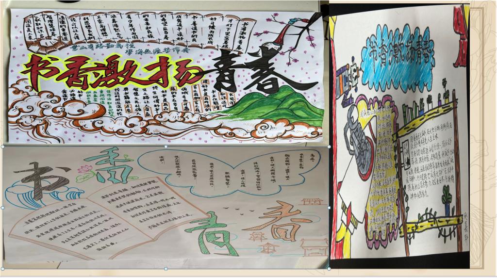 同时DIY社团李丹、池月、李海鹏等同学也向我们分享了他们绘制的手抄报。在制作过程中,他们不断修正自己的不足,从最开始的毫无头绪到后来灵感迸发,其实其中不乏读书的作用。正如活动所言‘书香激扬青春’,丰富多彩的青春怎么能少了书的陪伴呢?