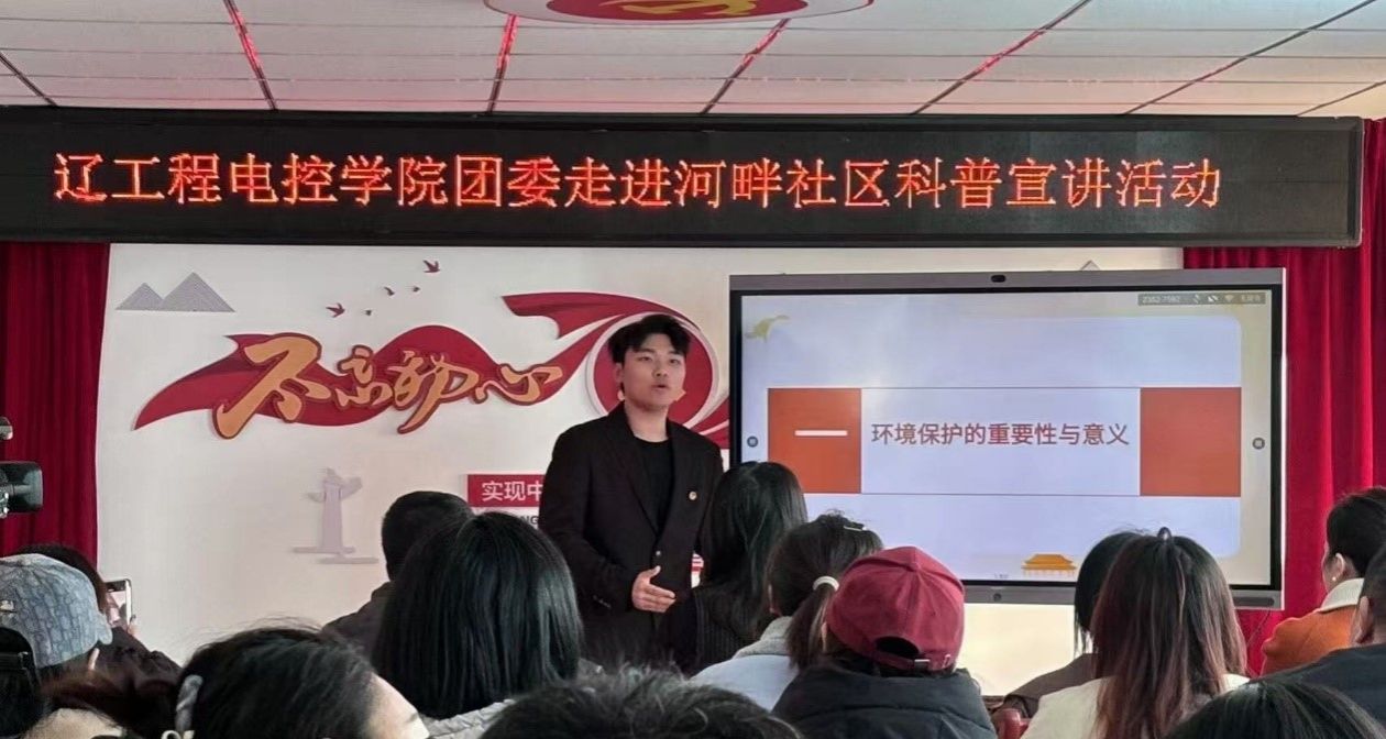 宣讲团成员王锟博首先从环保法的修订与目的、内容概述、国策与发展、乡村振兴等角度宣传了环境保护的重要性与意义。接着,介绍了兴城市节能减排、碧水工程、宁静工程几项环境保护的实际案例。最后,讲解了环境恶化造成的生态环境破坏、人类健康受损、经济损失等问题不容小觑。