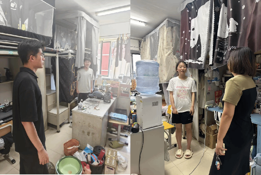 在走访留校学生寝室时,辅导员与同学们亲切交流,详细了解他们的暑期安排、生活需求以及是否存在困难,并叮嘱大家注意防暑降温、用电安全和人身财产安全。