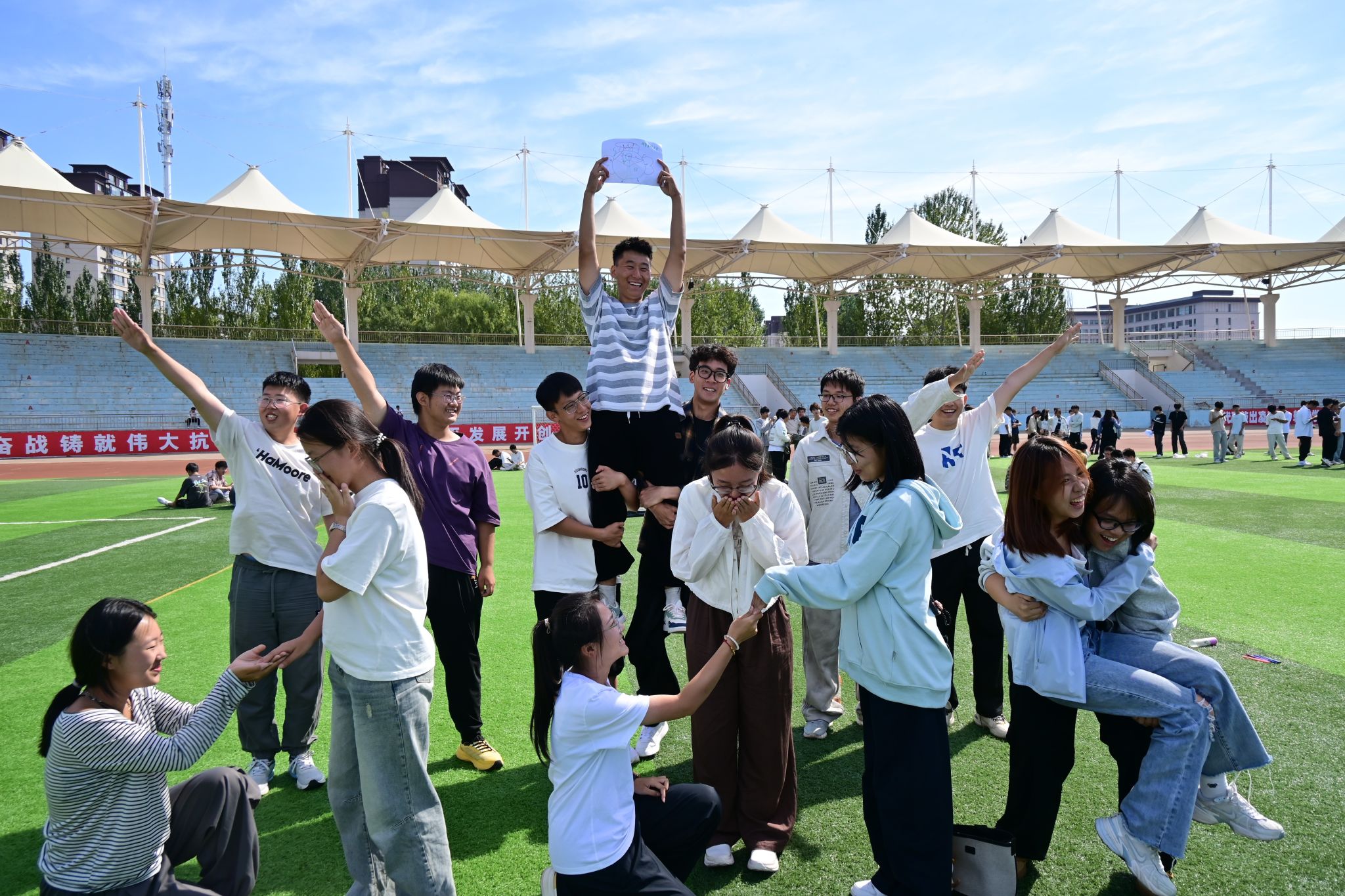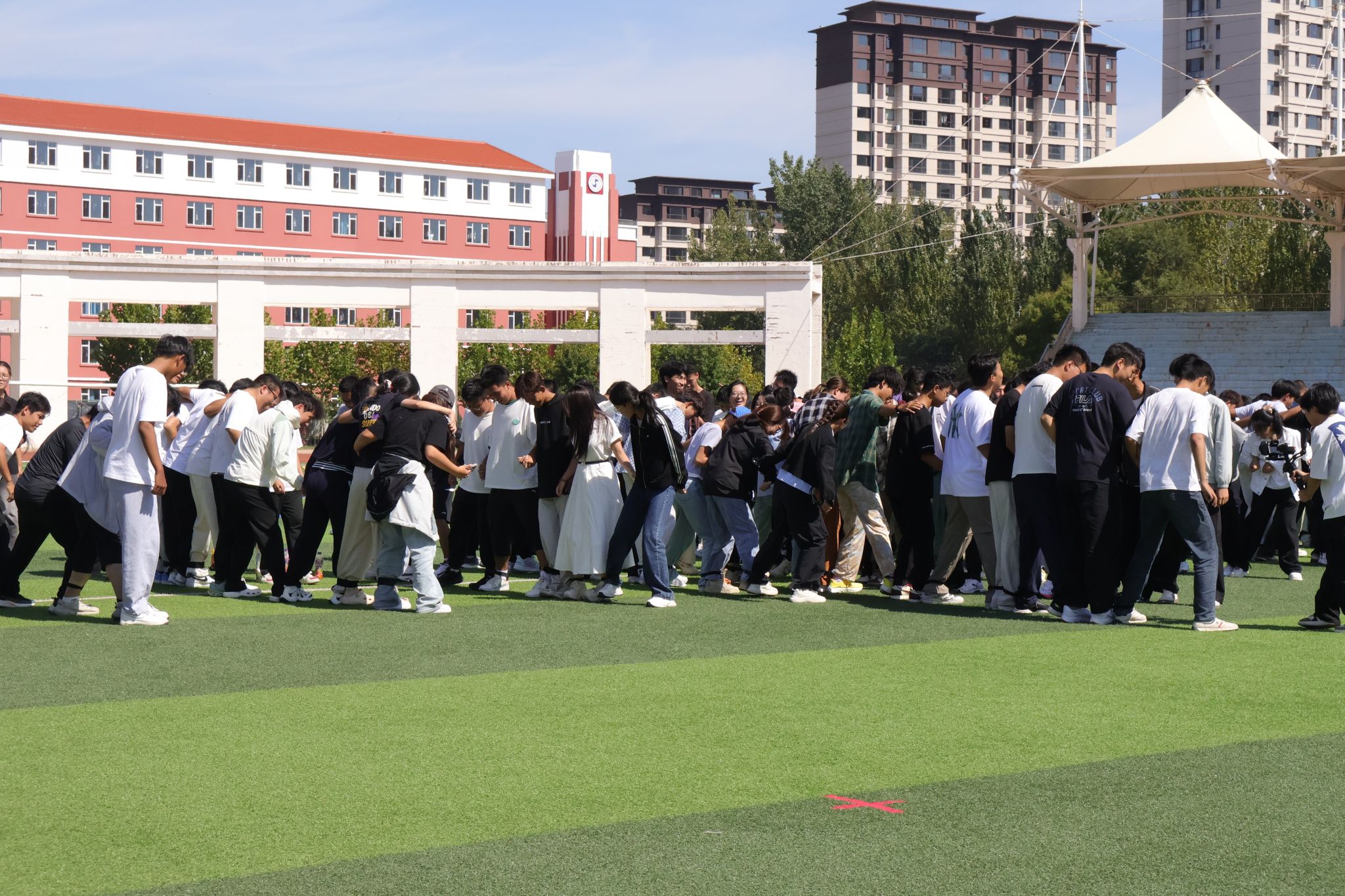 于龙湾校园体育场开展2025级新生心理行为训练。葫芦岛校区心理发展与健康管理中心刘娟、苏展,U体育