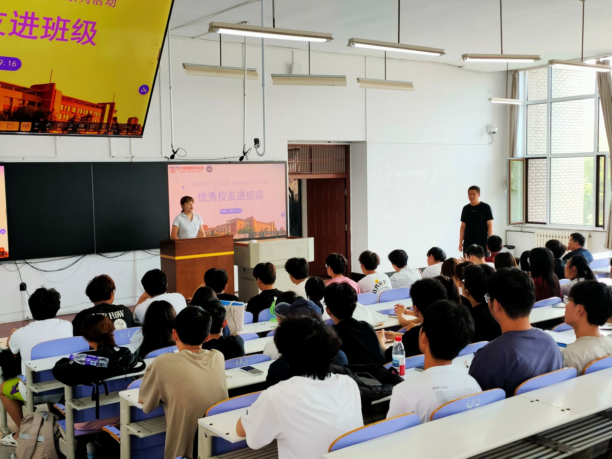 在尔雅208教室开展“优秀校友进班级”主题活动。