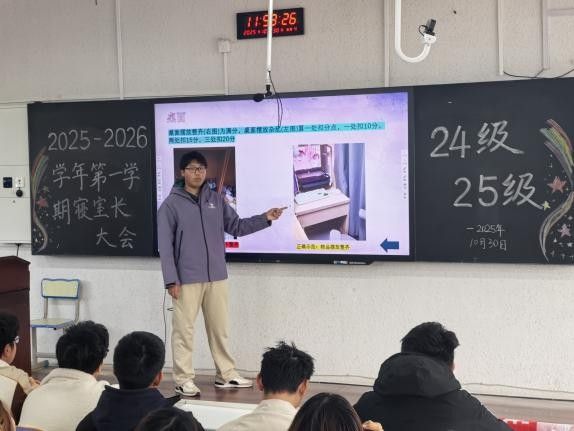 会议伊始,陈老师指出,寝室是同学们生活与学习的重要场所,良好的环境与和谐的氛围至关重要。他强调,寝室长作为“领头羊”,在寝室建设中发挥着关键作用,应主动承担责任,带头遵守校规校纪,团结关心室友,带领室友将寝室建设成为温馨、有爱、安全、整洁的“小家”。