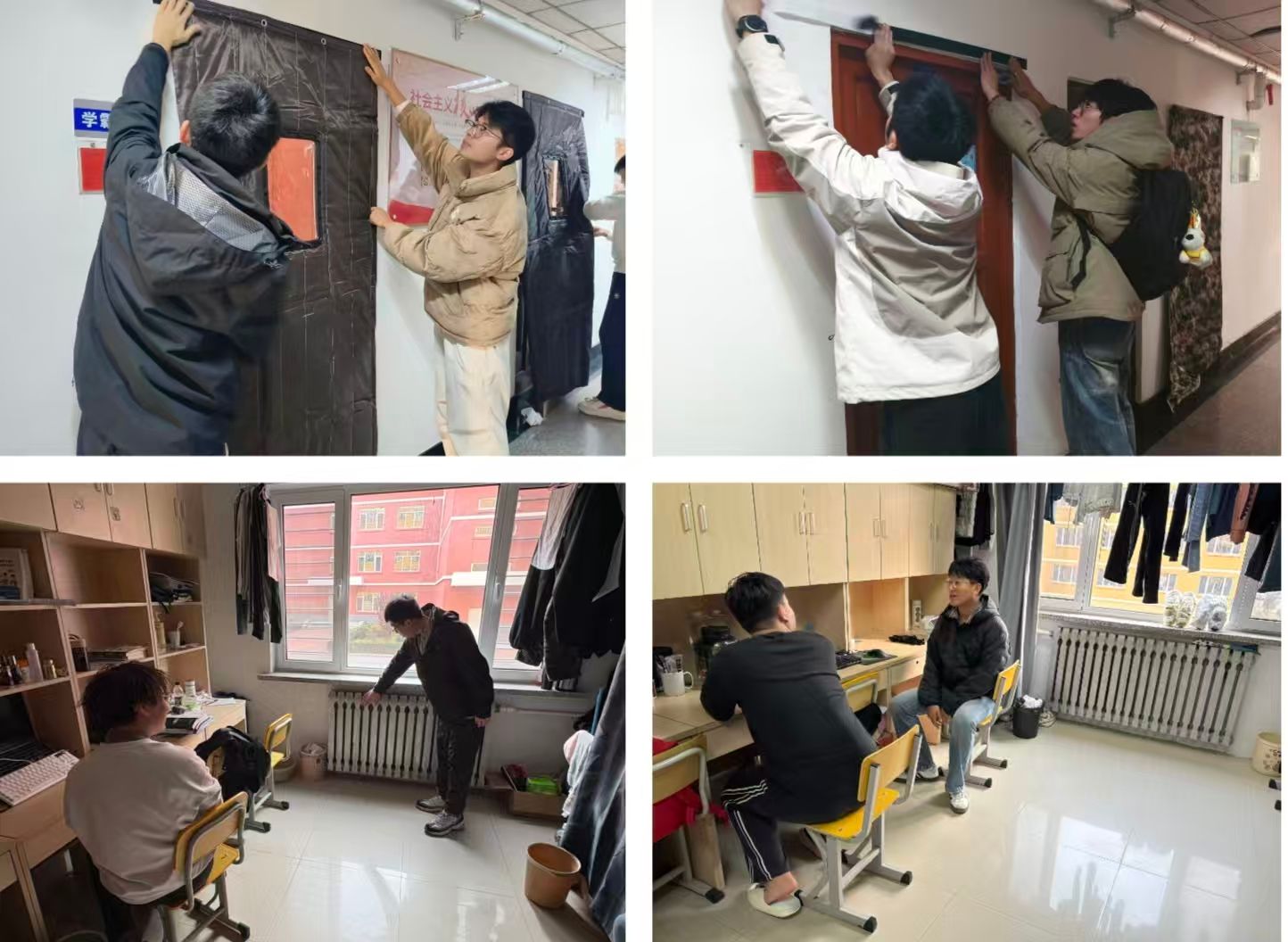 走访过程中,辅导员与院自委学生干部一同动手,为每一间一楼寝室安装厚实保暖的门帘,阻隔冷风侵入,提升室内保温效果。同学们纷纷表示,“门帘虽小,温暖却真”,U体育