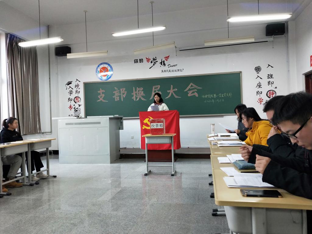 学生第一党支部召开换届选举大会,大会由党支部书记贾鑫同志主持,全体党员参会。