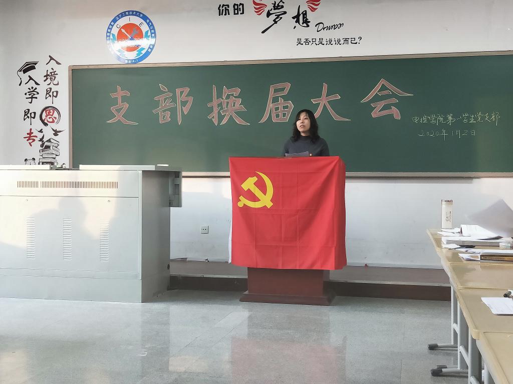 换届选举大会在庄严的国歌声中开幕。首先,贾鑫书记代表党支部对近三年工作进行总结。她总结回顾了三年来党支部各个方面的情况,支部在U体育