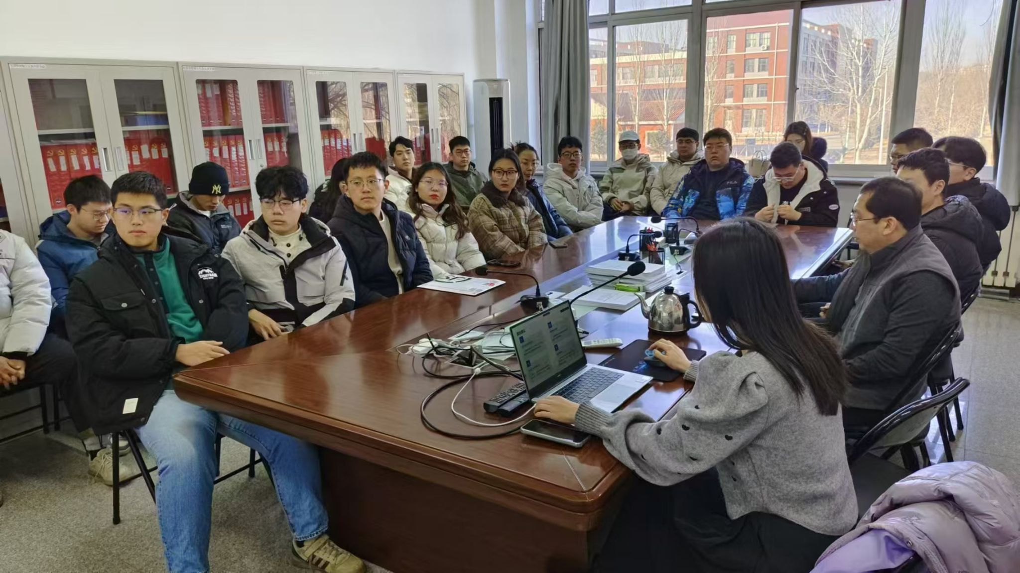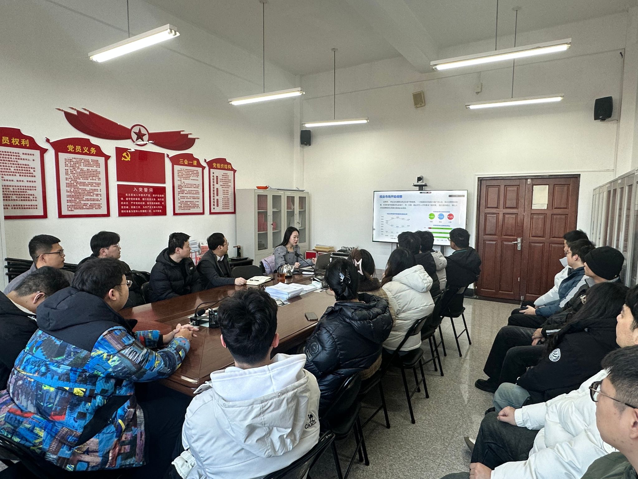 党委书记田国胜、25届部分学生代表出席现场会议,其他学生线上参会。
