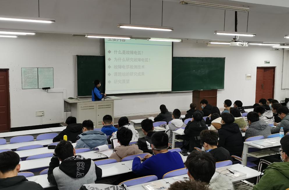 王智勇副教授在静远楼228教室为电气18级同学举办了一场题为“串联故障电弧及其保护方法”的学术讲座。
