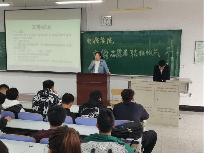 党委副书记张勇志、大学生学习与发展指导中心主任张驰。会上,张驰老师对学霸志愿者的成员组成、服务项目、预约方式等进行了讲解,方便各班有学业辅导需求的同学与学霸志愿者们建立联系。