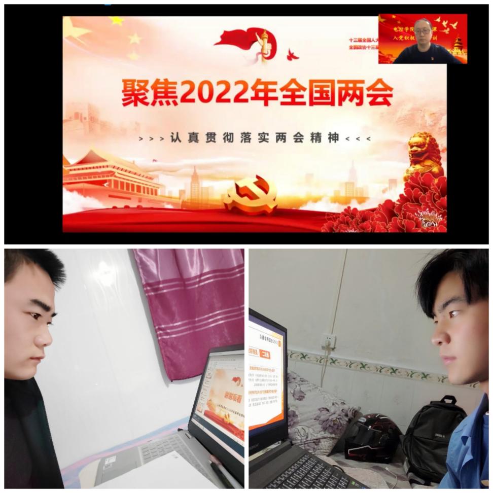 学生第二党支部书记施振雷老师以“提高个人修养,永远跟党走”为主题,聚焦2022年全国两会,从全国两会的看点、会议议程、十大热点话题、社会调查结果这四个方面入手,引领同学们认真学习贯彻两会精神。