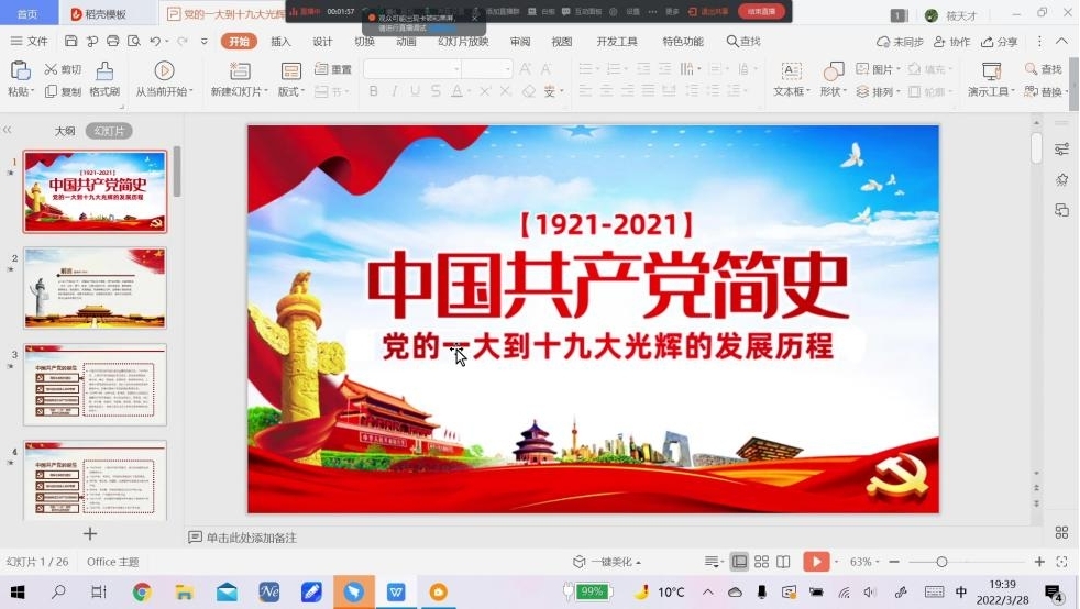 3月30日,葫芦岛校区组织人事部李旭春老师通过讲解中国共产党百年发展历程,希望同学们铭记中国共产党百年奋斗的光辉历程,深刻认识中国共产党为国家和民族做出的伟大贡献,深刻感悟中国共产党的伟大,深刻认识红色政权来之不易、新中国来之不易、中国特色社会主义来之不易、更加坚定共产主义信念。