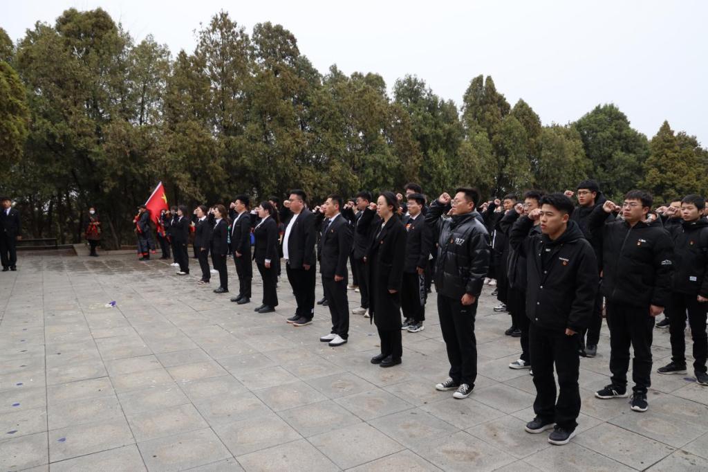 伴随着淅沥的雨水,学生代表敬献花圈,全体团员在烈士纪念碑前重温入团誓词,齐唱团歌,牢记共青团员的职责和使命。
