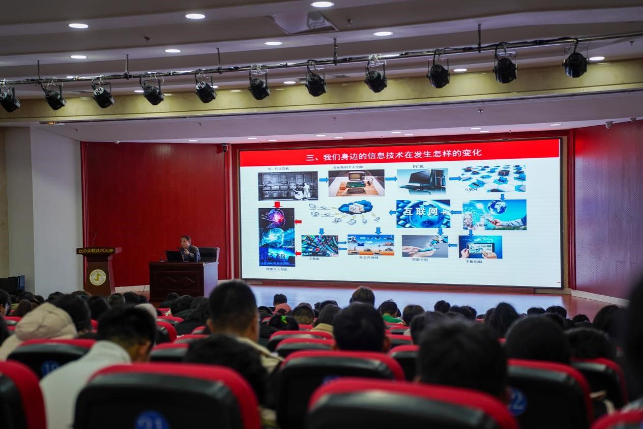 郭嗣琮教授以“聆听时代脚步”为主题,围绕“中国制造2025”与中美贸易摩擦、认清重大技术突破对人类社会的作用、我们身边的信息技术在发生怎样的变化、第四次技术革命在怎样改变这世界四个部分讲解了技术革新对我们生活和社会起到的重要作用,特别是对人工智能神经网络方面进行详细介绍,同时结合自身的经历对同学们提出几点建议,希望同学们积极投入到具有创造性的领域中去发光发热。