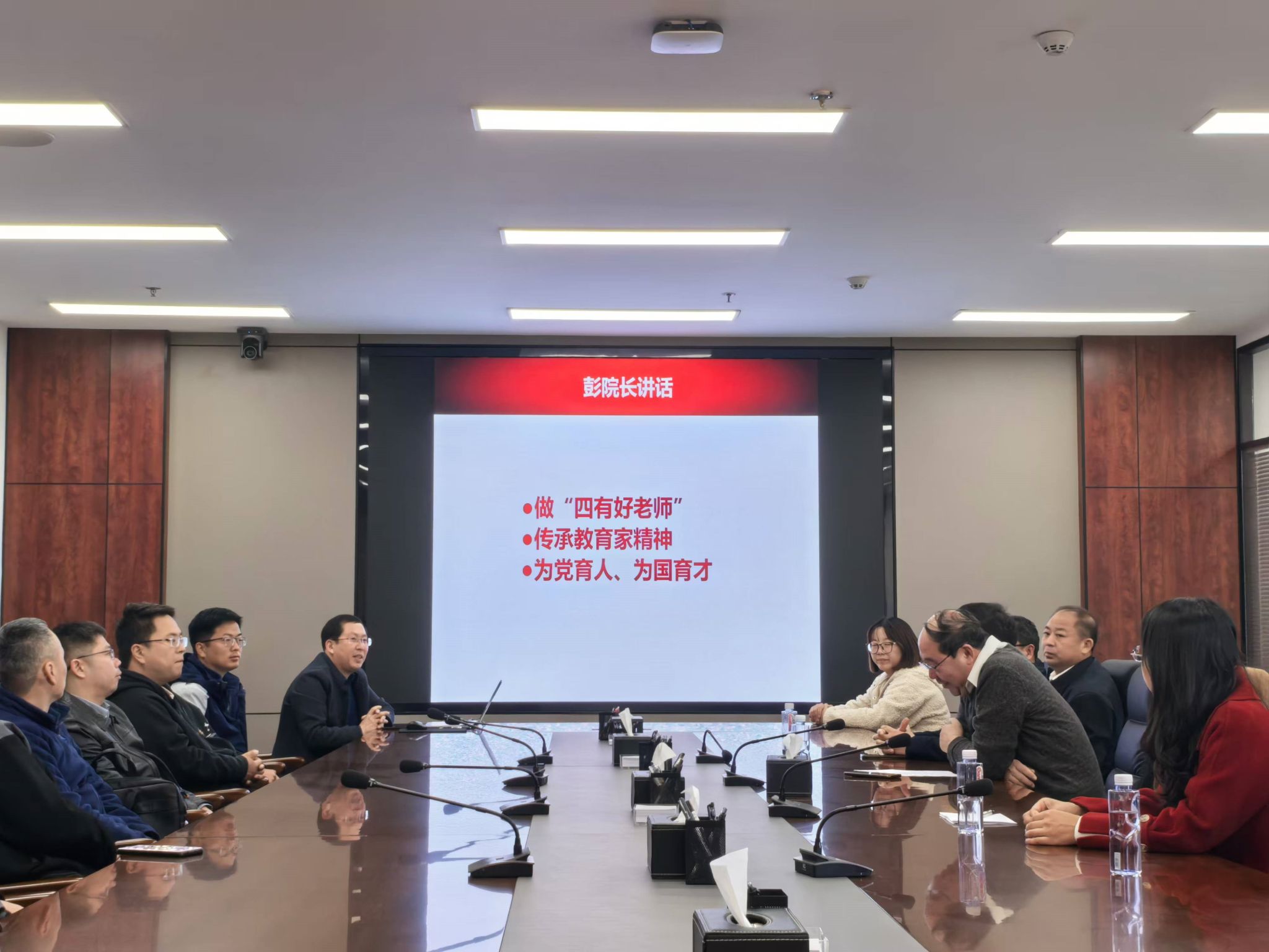 彭继慎院长发表讲话,他勉励新入职教师,要信念坚定,厚植家国情怀,做“四有好老师”,传承教育家精神,担负起为党育人、为国育才的时代使命,努力成为服务教育强国建设的践行者。