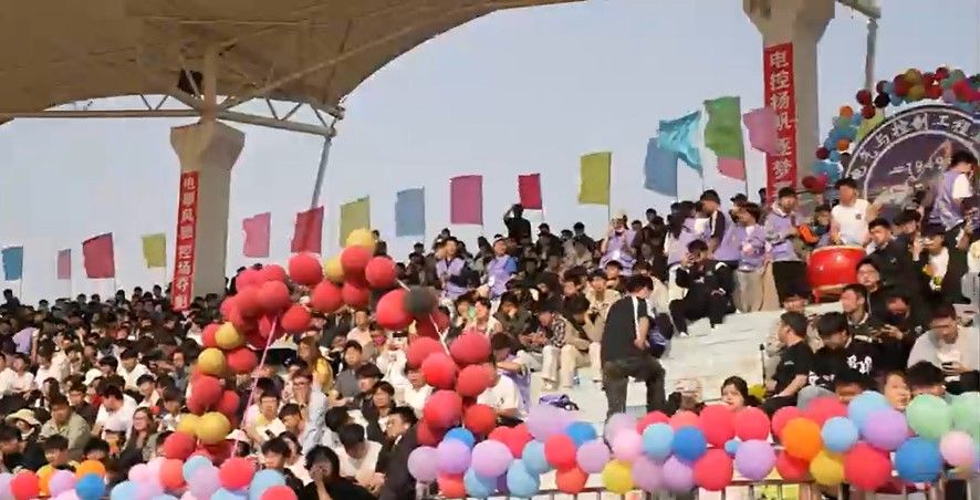 看台上,由研究生和本科生组成的1500余名观众为运动员加油鼓劲,加油声、呐喊声震耳欲聋,此起彼伏的“加油”声汇聚成青春最强音。