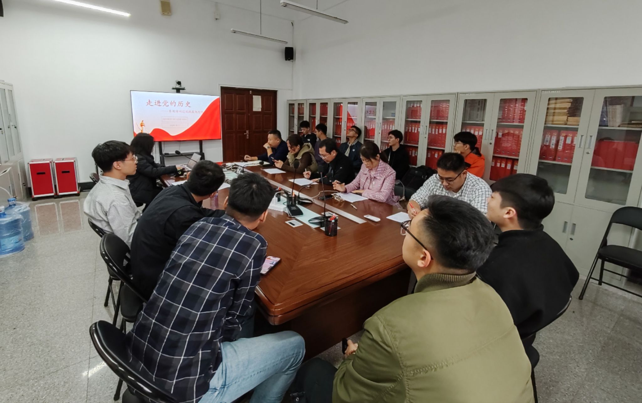 党委书记田国胜、副处级组织员王宇、学生党支部书记李莹、组织员郭思瑶、研究生兼职辅导员李昊同学。