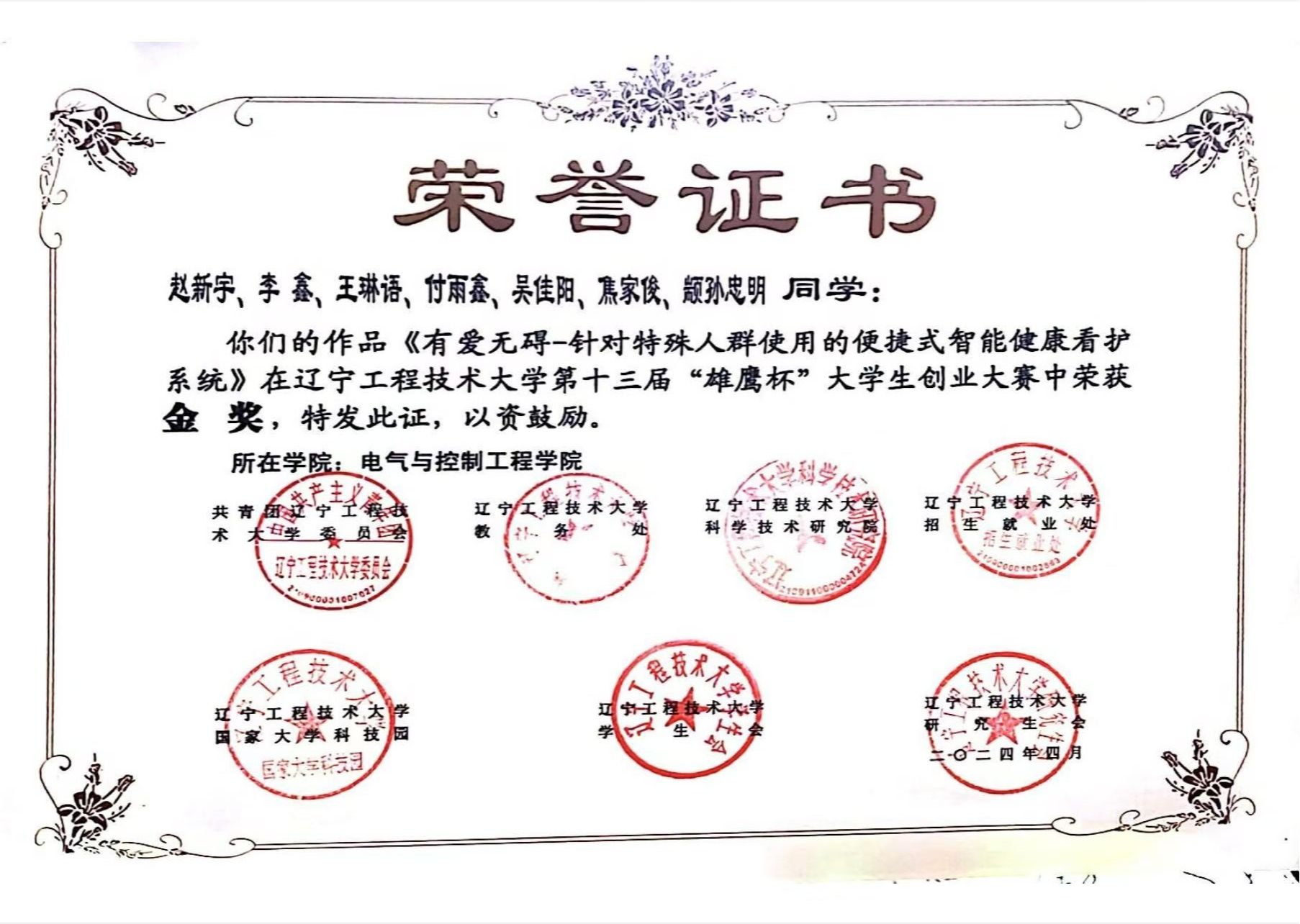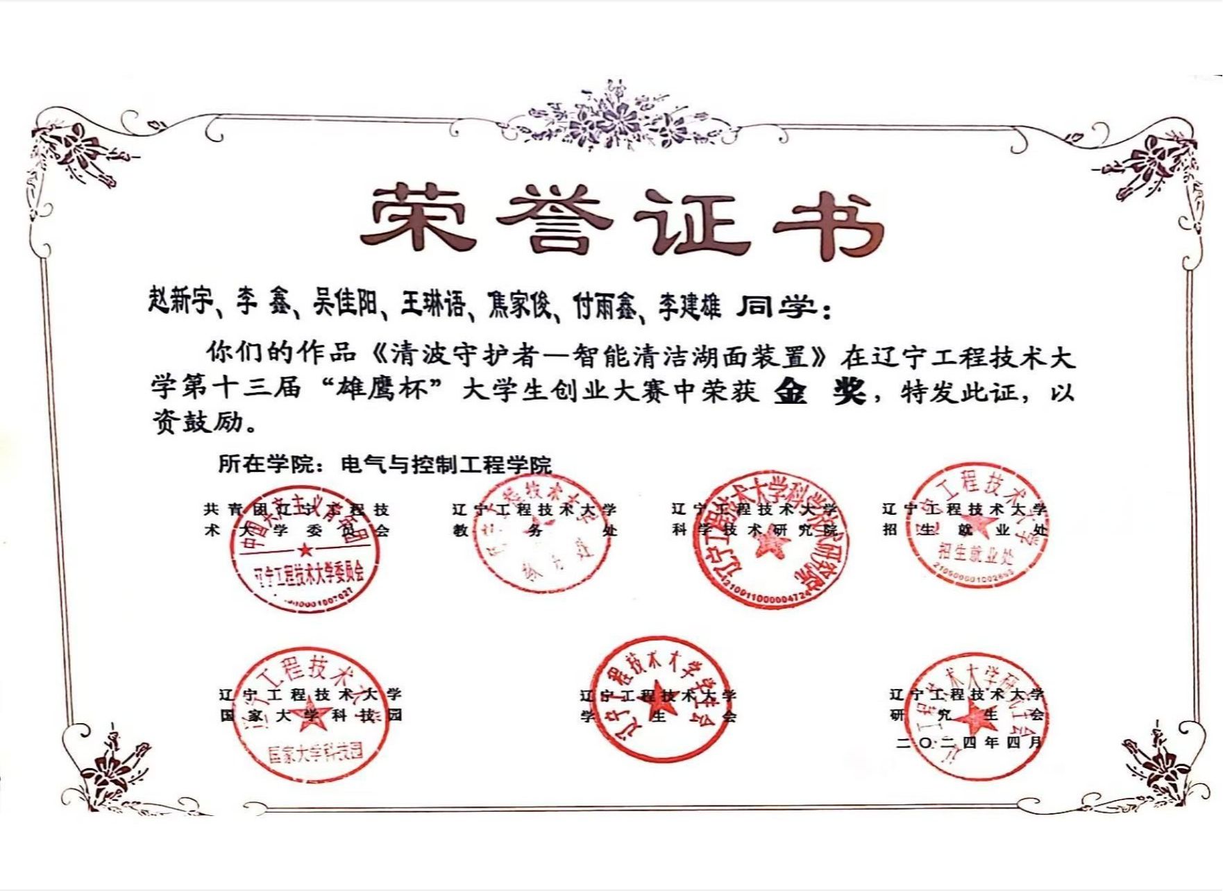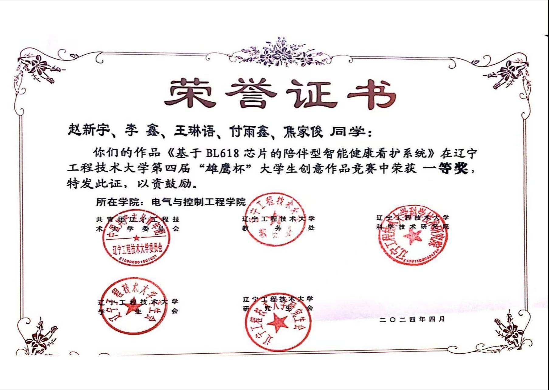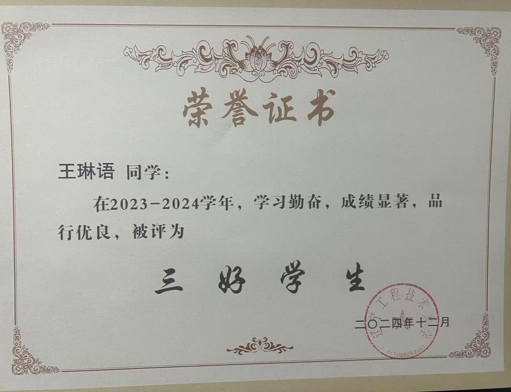 其他类:2024年,获得 “三好学生”荣誉称号。