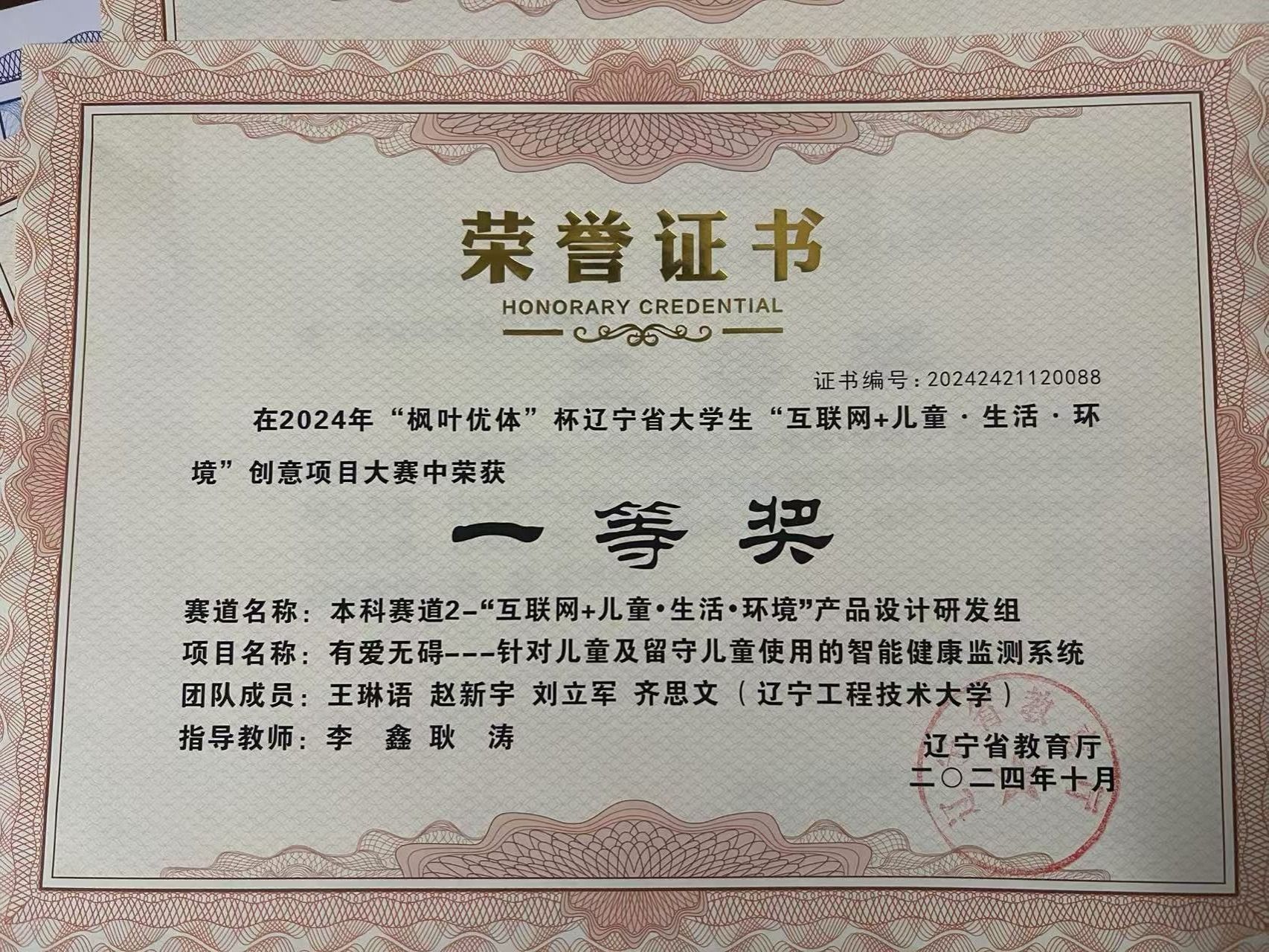 3 “枫叶优体”杯辽宁省大学生“互联网+儿童·生活·环境”创意项目 奖项:省级一等奖 指导教师:李鑫、耿涛