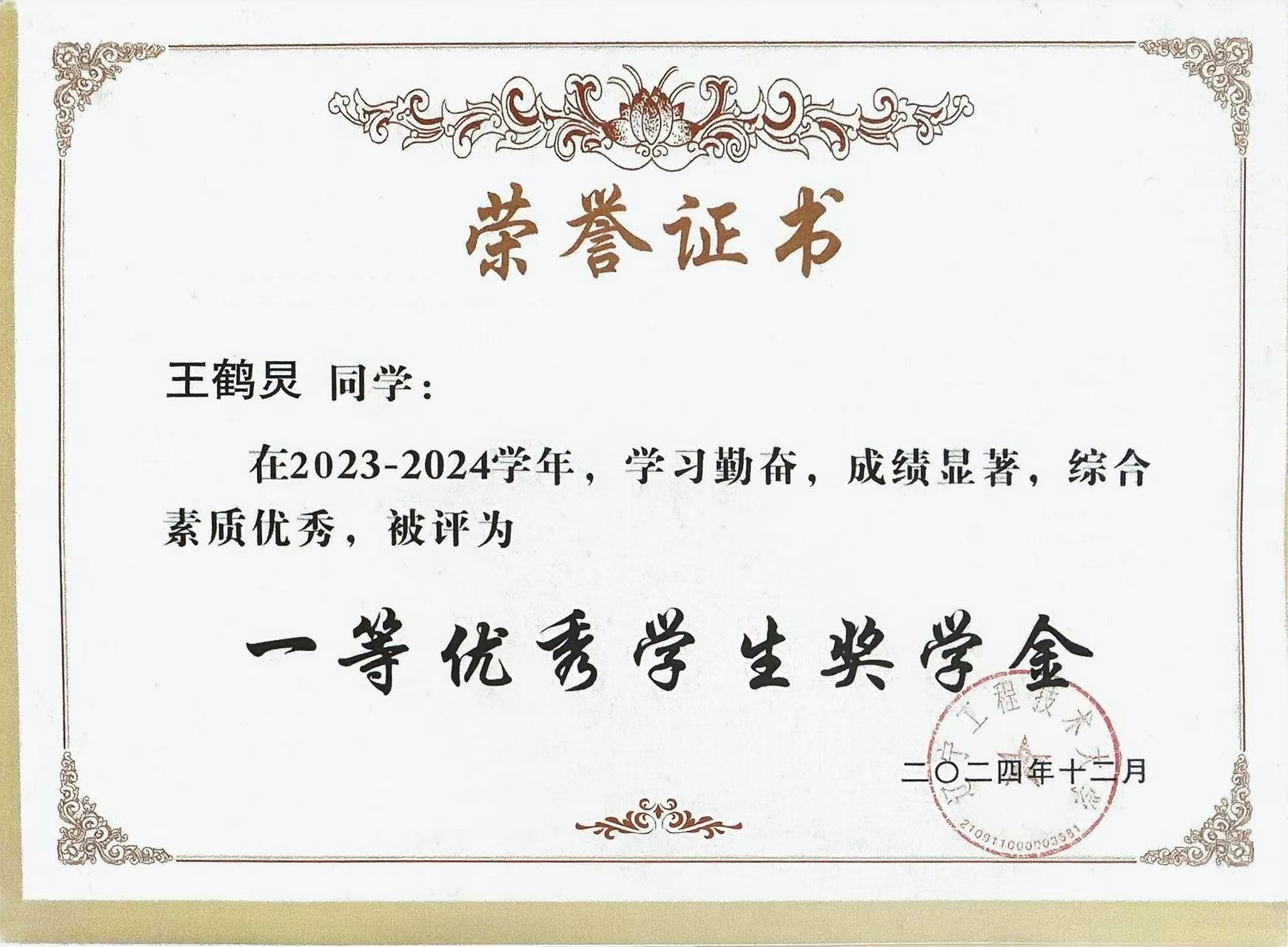 奖学金类:一等优秀学生奖学金、国家奖学金