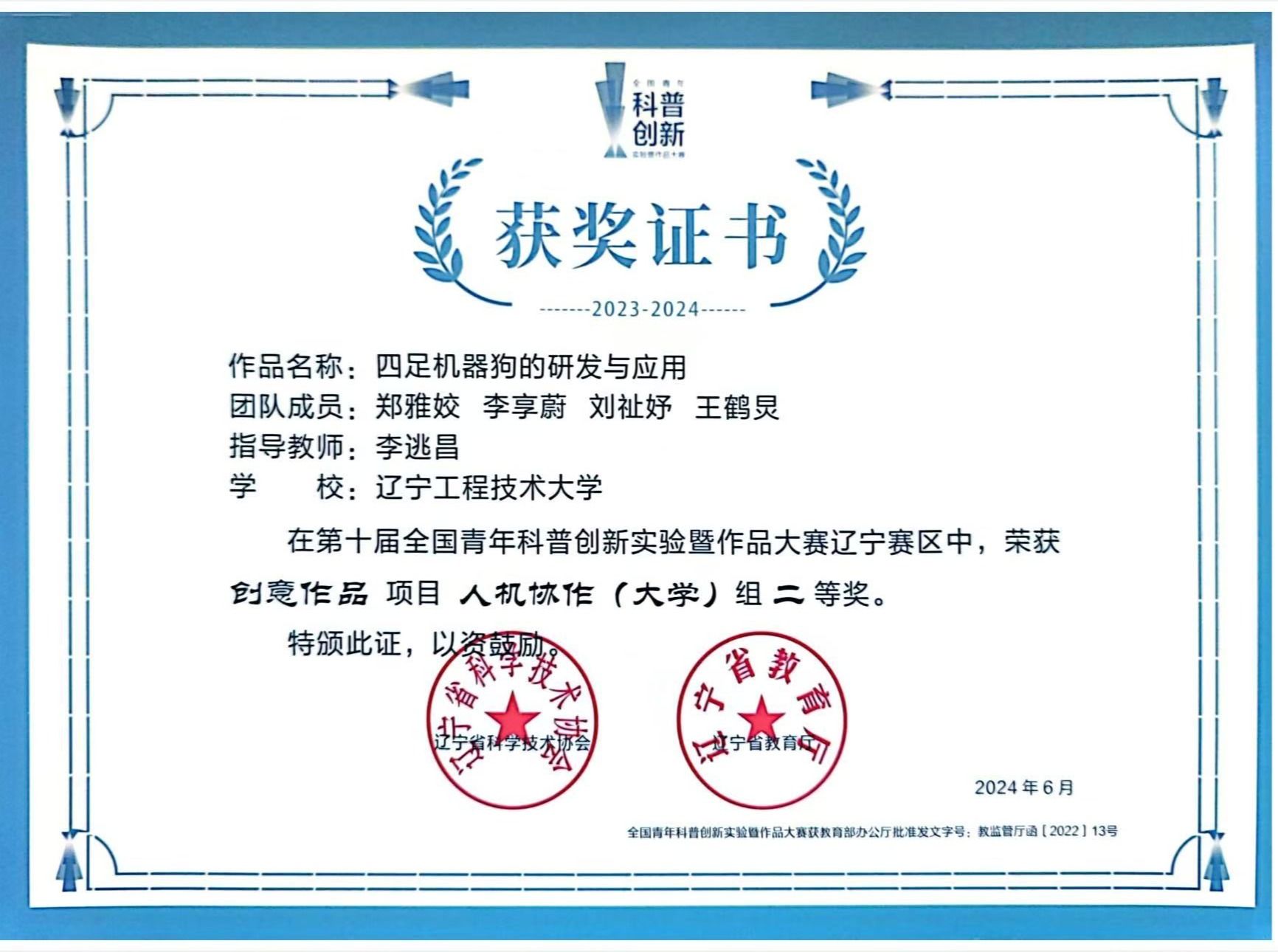 3 全国青年科普创新实验暨作品大赛 奖项:省级:二等奖 指导教师:李逃昌