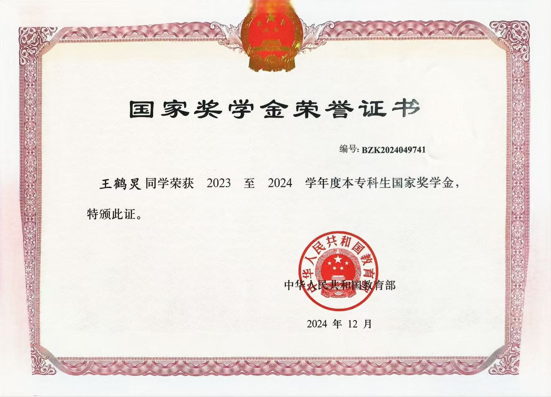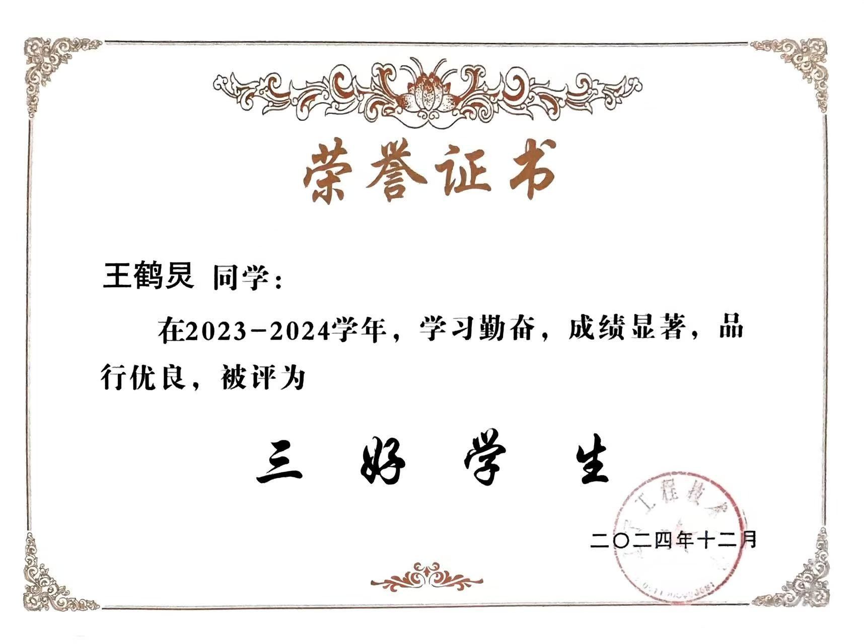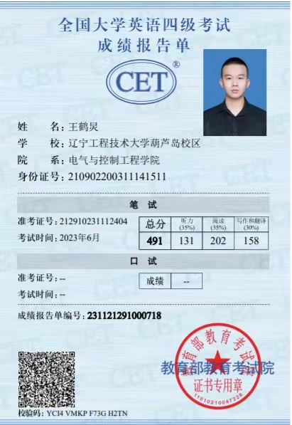学业成绩方面:2022-2023学年学习成绩专业排名第1,2023-2024学年学习成绩专业排名第6