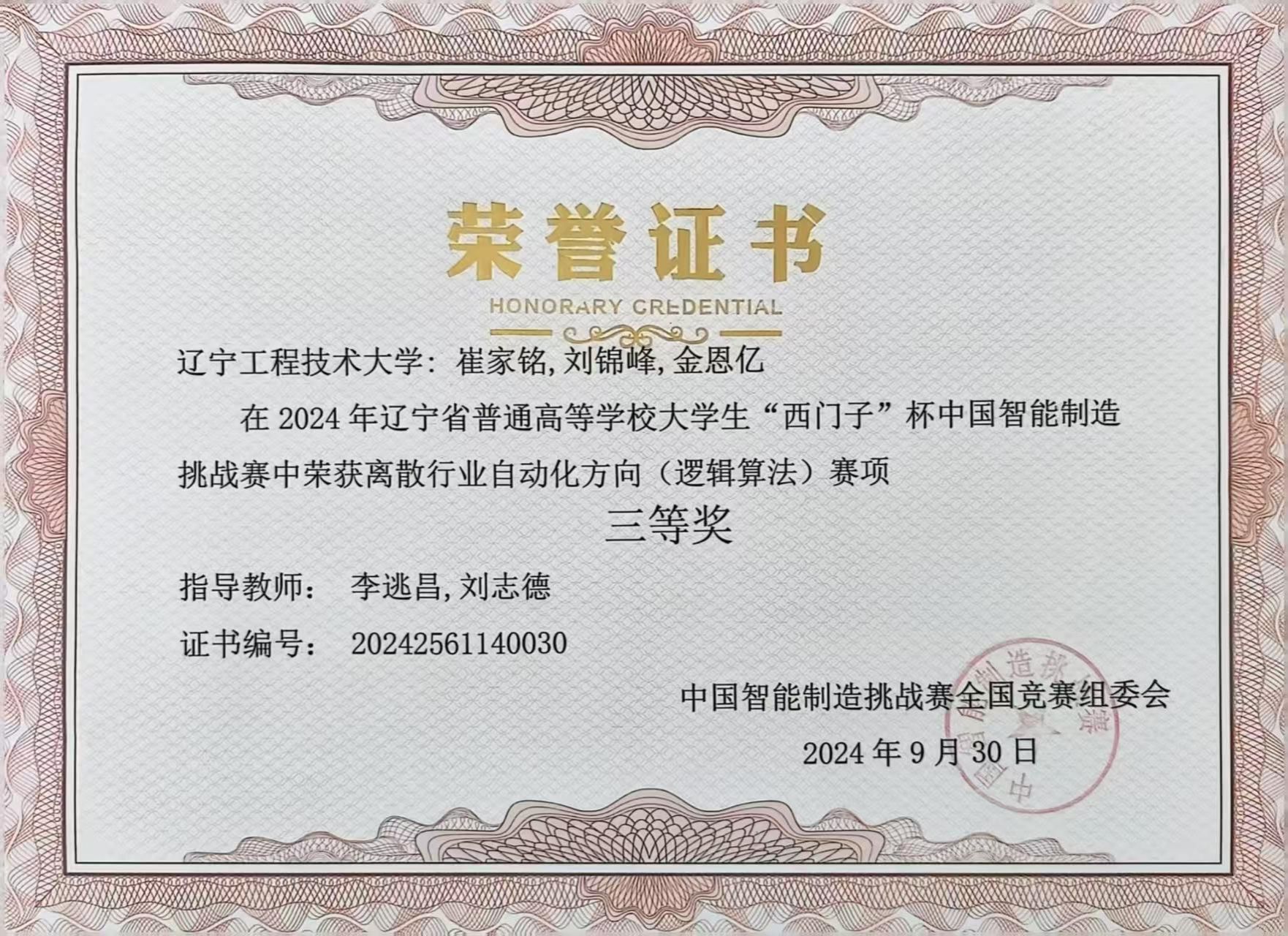 1 2024年“西门子杯”中国智能制造挑战赛离散行业自动化(逻辑算法)奖项:省级三等奖 指导教师:李逃昌、刘志德