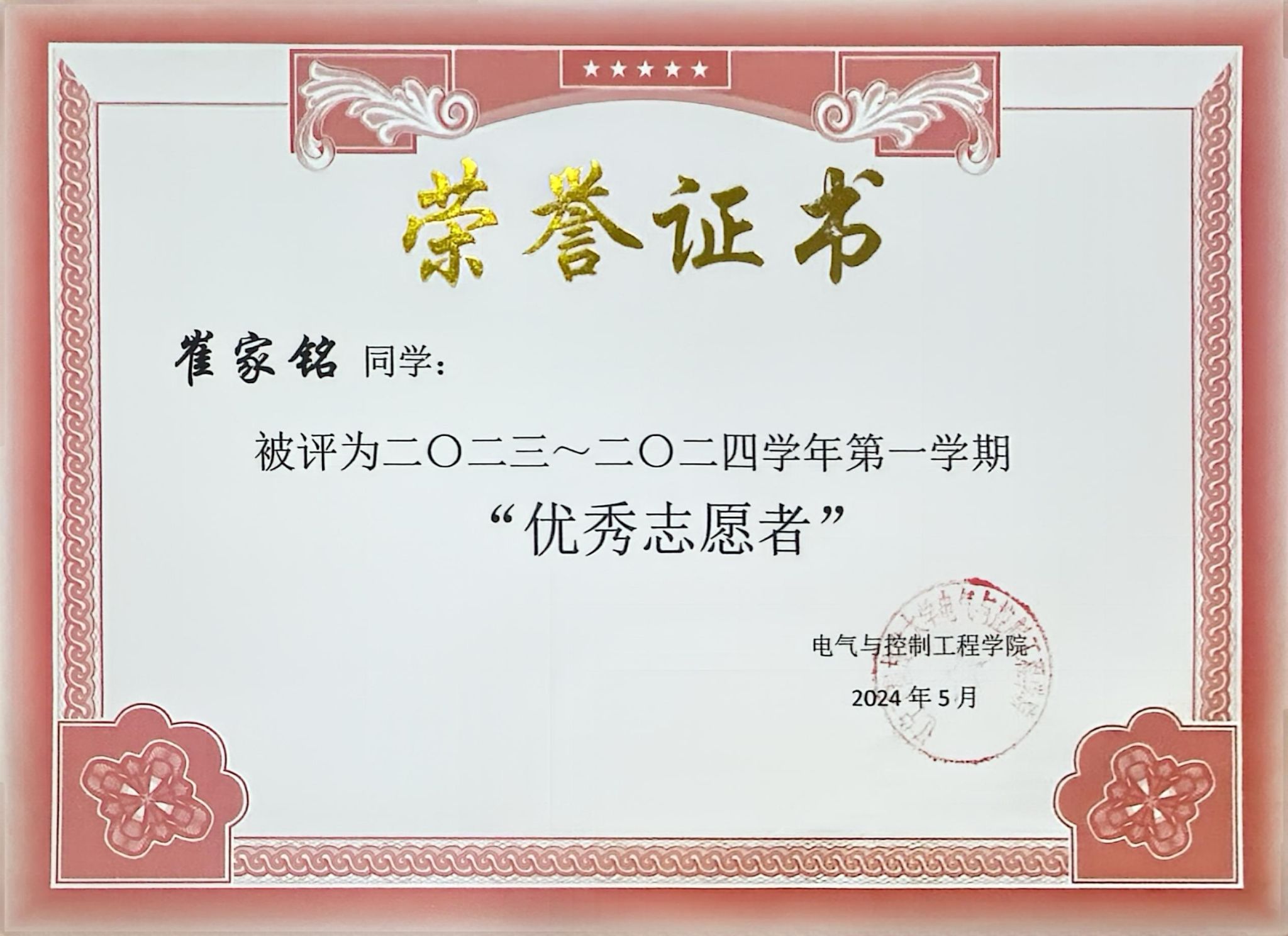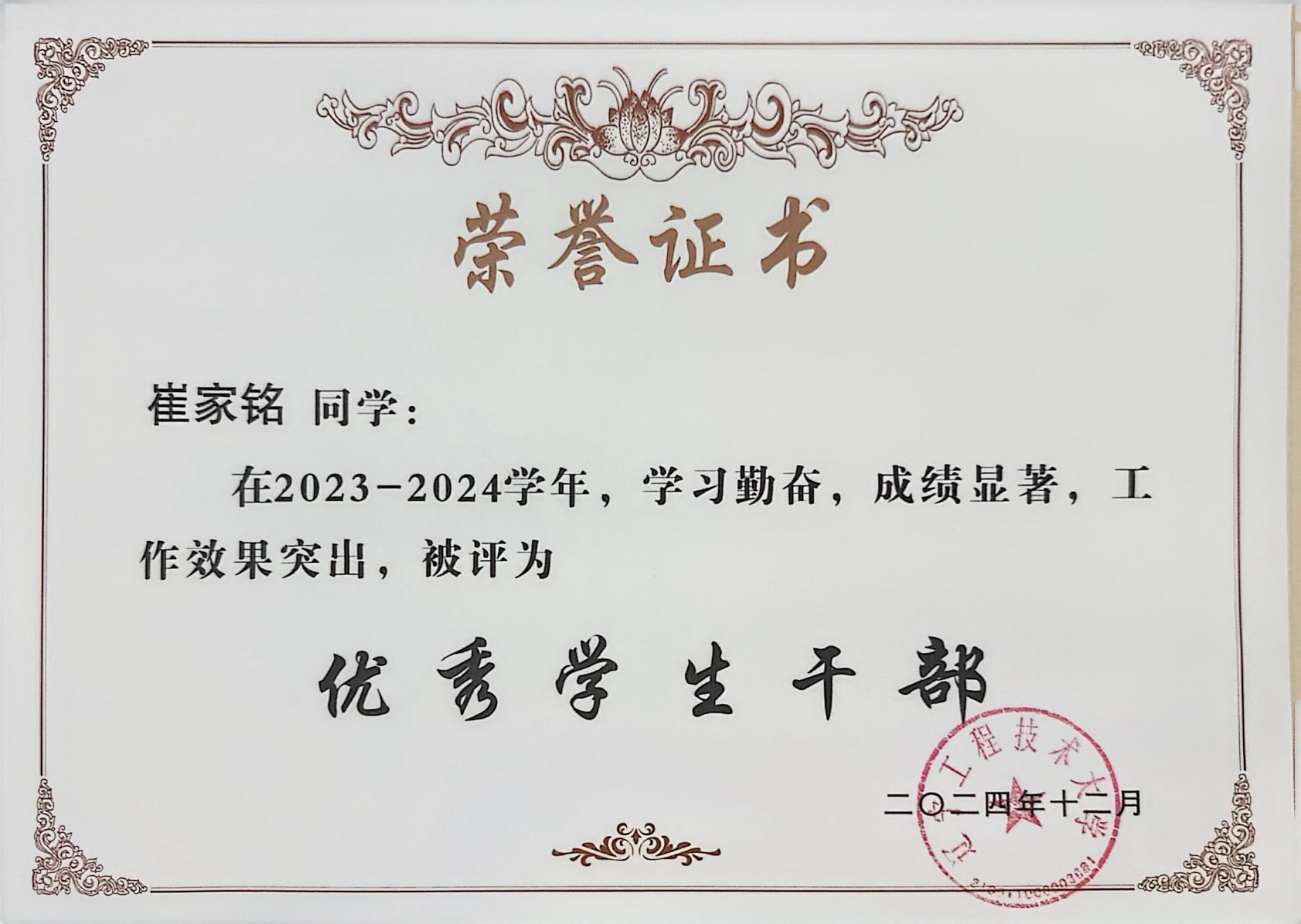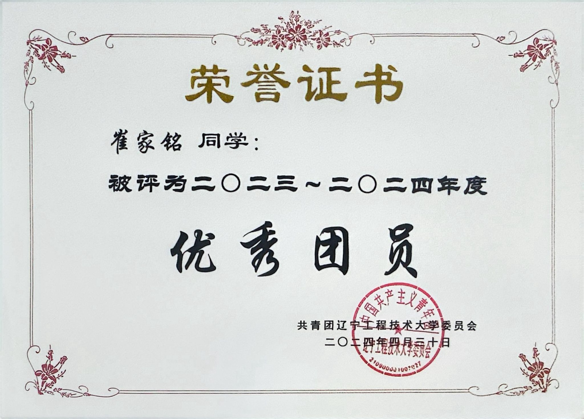 其他类:获得2023-2024年度“优秀团员”荣誉称号、获得2023-2024年度“优秀学生干部”荣誉称号