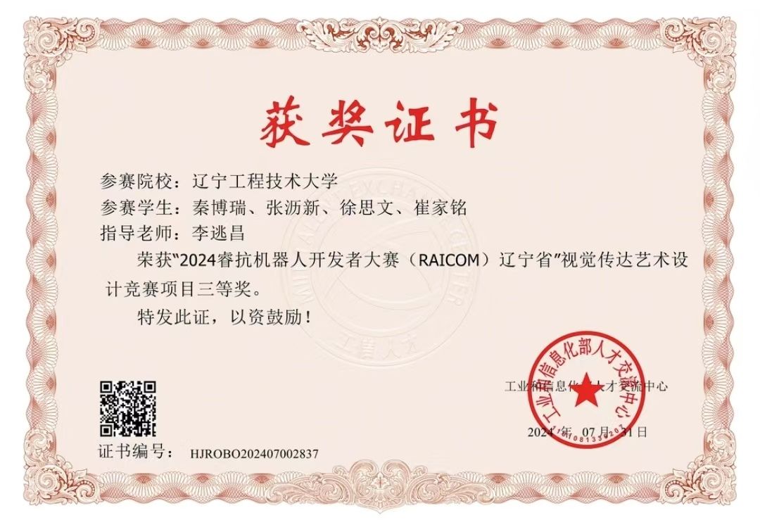 2 2024年睿抗机器人开发者大赛辽宁省“视觉传达艺术设计竞赛项目”奖项:三等奖 指导教师:李逃昌