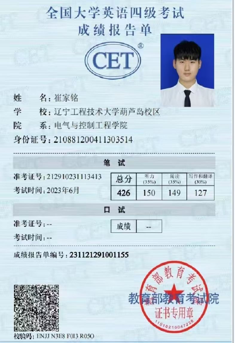崔家铭,电网22-2班学习委员,电网24-2班副班导师,U体育官网