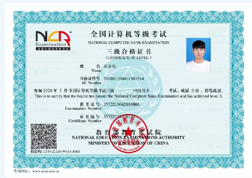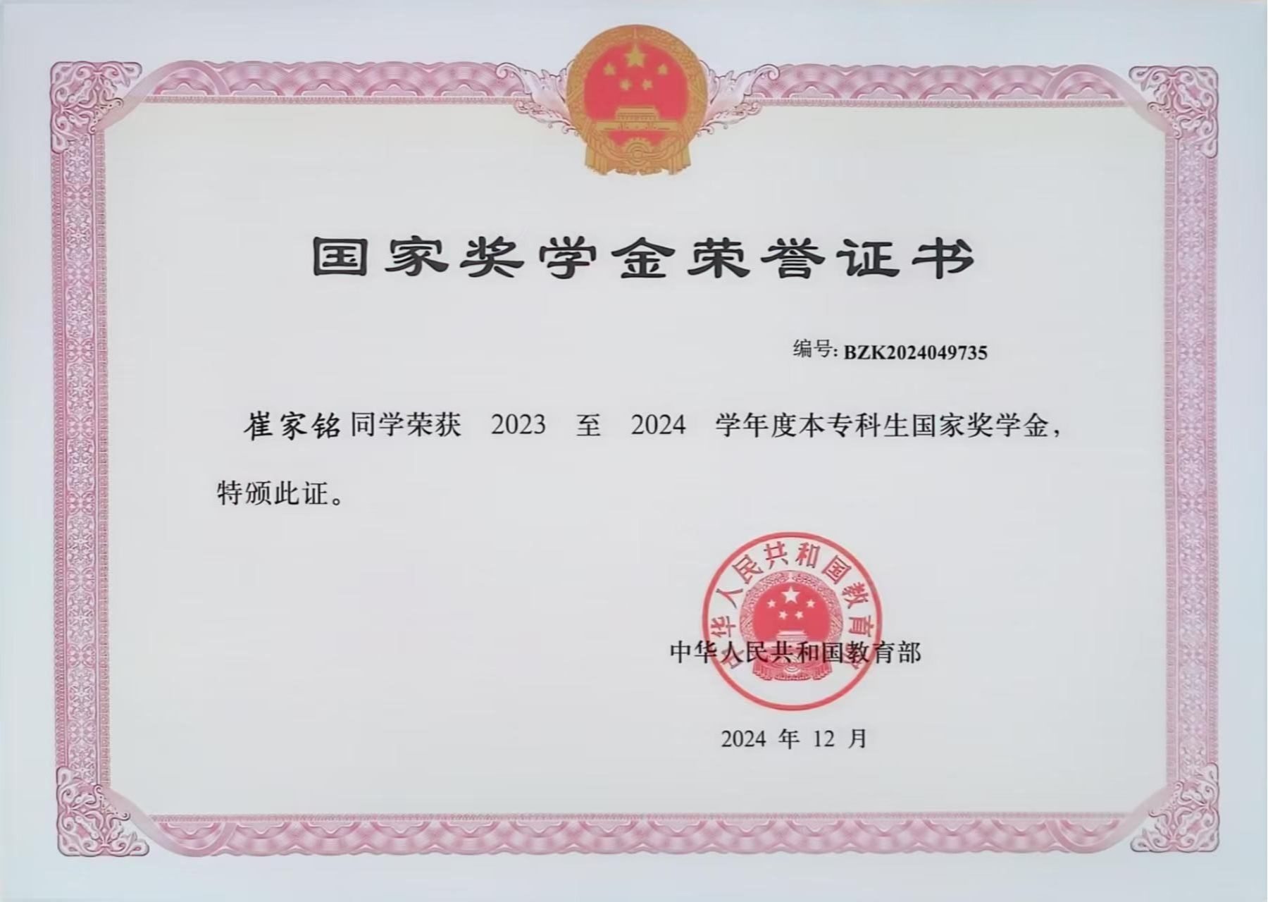 奖学金类:2022-2023学年校级一等优秀学生奖学金、2023-2024学年校级一等优秀学生奖学金、2024年国家奖学金