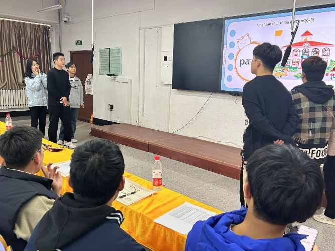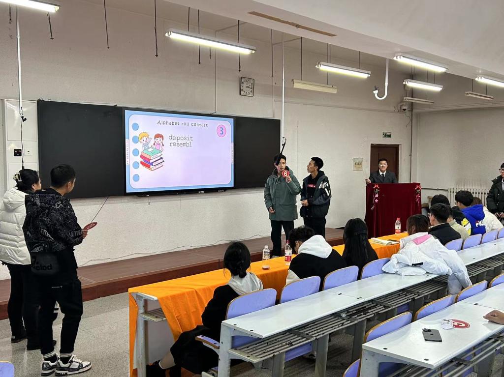 本次比赛分为个人赛和团体赛两部分。个人赛包括“字母滚动抢答赛”、“单词飞花令”和“看图说词抢答赛”三个环节,其中最扣人心弦的当属抢答环节,选手们上演“抢”题大战,比分紧咬不下,扣人心弦。团体赛则更考验团队的整体实力,每组3名选手要经过“单词飞花令”和“逛美式三园”的考验,他们默契配合,神情专注,斗志昂扬,思维敏捷,自信满满,整个赛场气氛紧张有序。