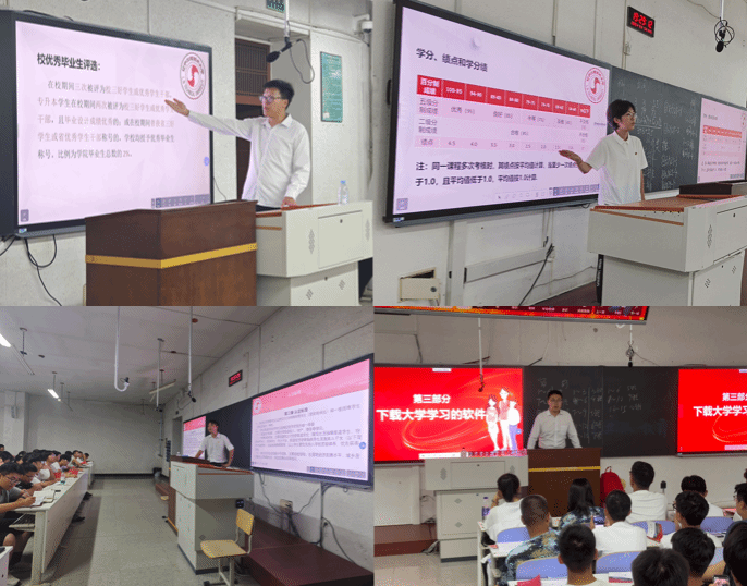 活动中,主讲人详细介绍了学生资助政策、奖助学金评定、住宿管理规定、违纪处分办法以及综合素质测评等内容,重点强调了晚点名制度、宿舍卫生标准、考试纪律及违规认定等问题,并就新生们的疑问进行了耐心解答。