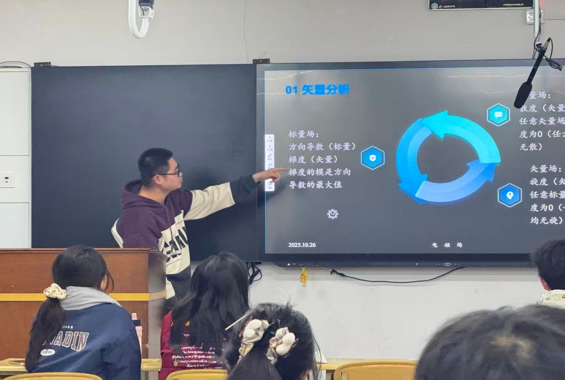 在专业课程中,邀请平均绩点3.50、电磁场科目94分的智能电网信息工程23-2班的姜中洋担任“小老师”,开展《电磁场》学业辅导与答疑活动。课堂上,他精准拆解知识难点,助力同学们快速掌握核心内容。同学们表示相关知识点得到了进一步巩固。