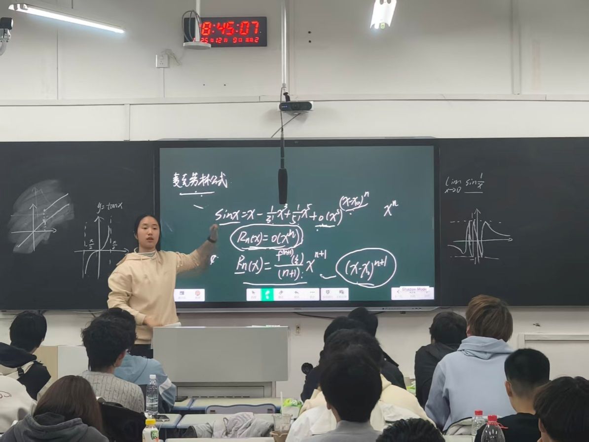 在基础课程中,邀请高等数学(上)期中考试高分的同学和驻班志愿者们担任“小老师”进行考题的讲解分析。“小老师”们结合自身解题思路,针对试卷中的高频错题、复杂题型展开细致拆解,层层递进地为同学们梳理考题。现场学习氛围浓厚,同学们纷纷表示加深了对高等数学知识的理解。